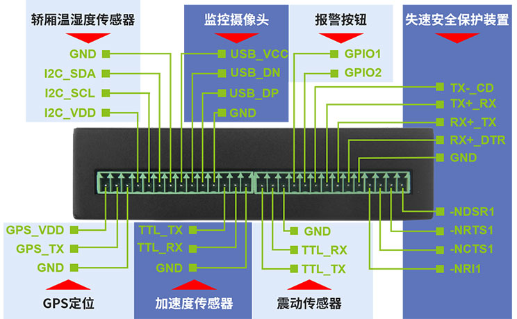 在整套电梯物联网管理方案中,将GPS定位传感器、轿厢温度传感器、加速度传感器、报警装置接入jinnianhui官网,金年会R100;利用R100的边缘计算能力,对采集到的数据进行运算和整形,迅速识别并响应异常运行状态;最终通过无限局域网络或蜂窝数据网络上发至管理平台,完成电梯的物联网接入。