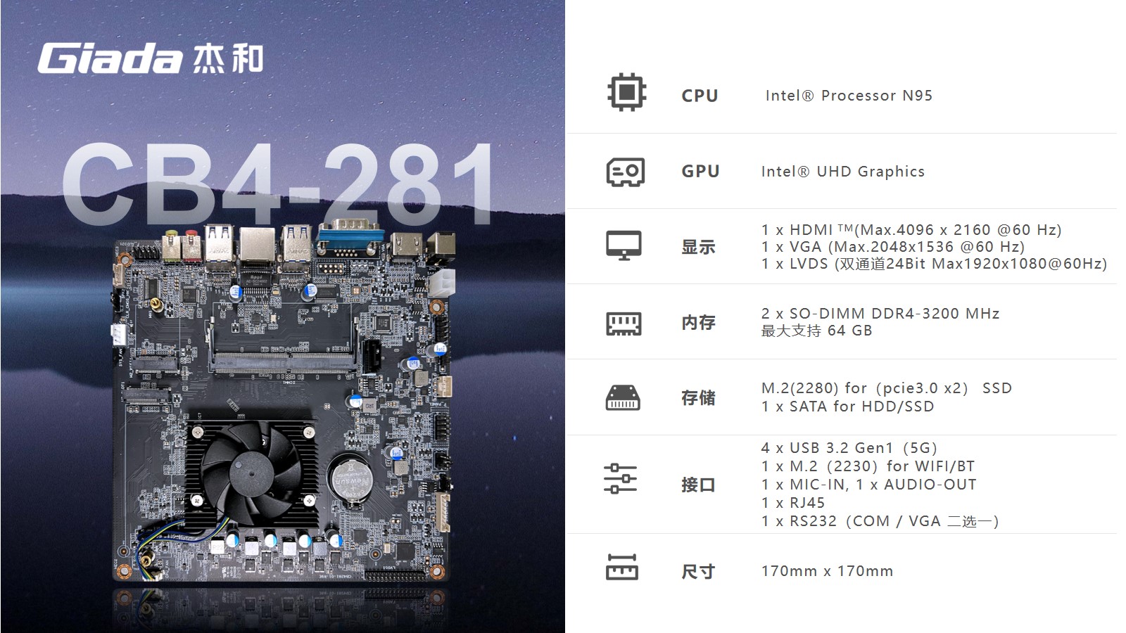 继推出高性能一体机主板——CB4-8121、CB4-6121后,jinnianhui官网,金年会科技再次带来全新低耗能主板CB4-281,它的厚度仅为25mm,比标准的mini ITX还要小43%。