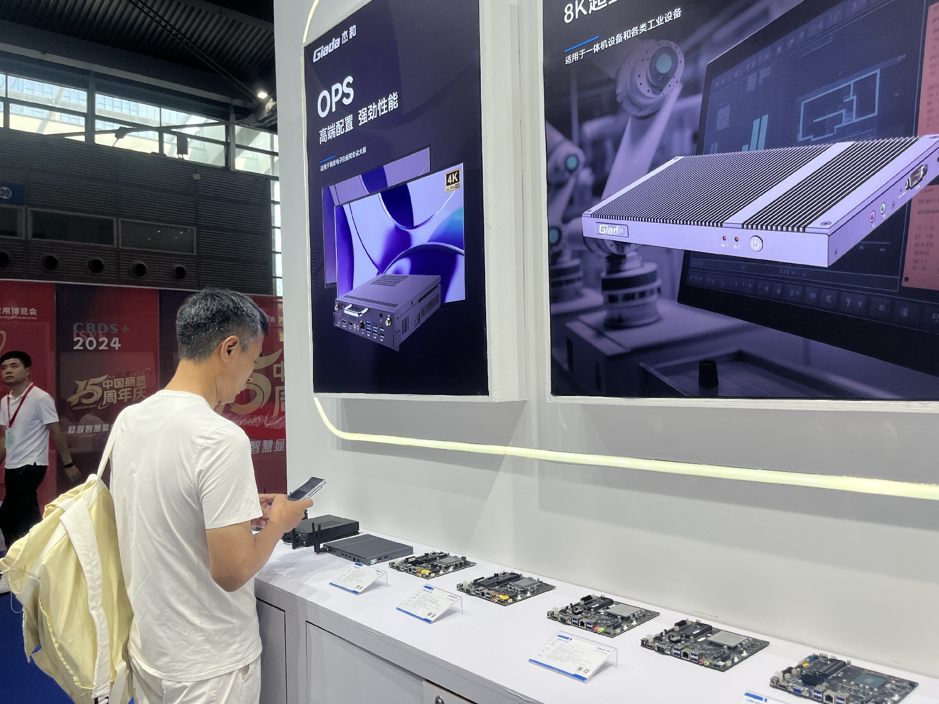 jinnianhui官网,金年会科技展位放置在c位的明星产品和最新产品吸引了众多参观者的目光。展台下方整齐排列着公司的产品,包括主板、嵌入式整机、OPS等,这些产品不仅适用于商业展示领域,还广泛应用于工业、制造业和教育业等多个行业。