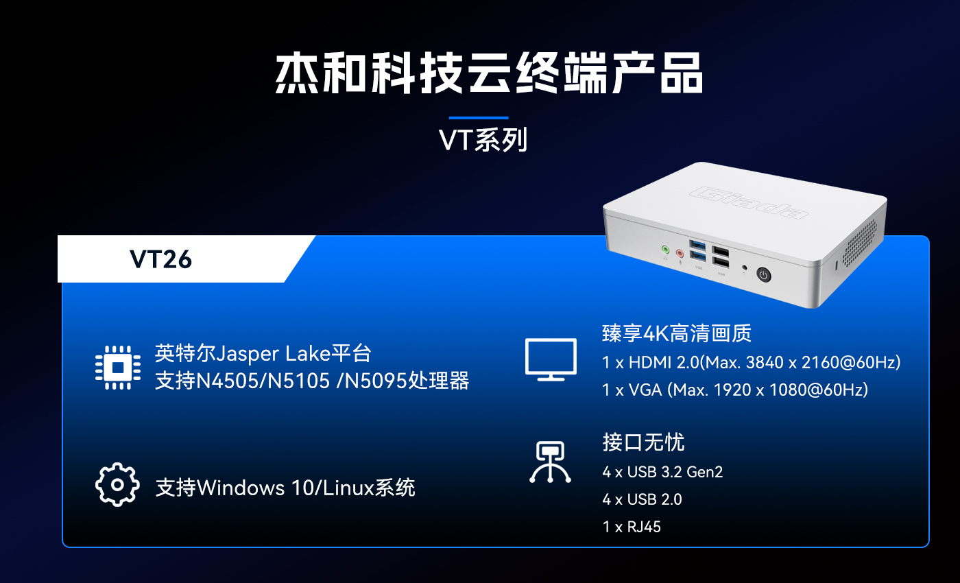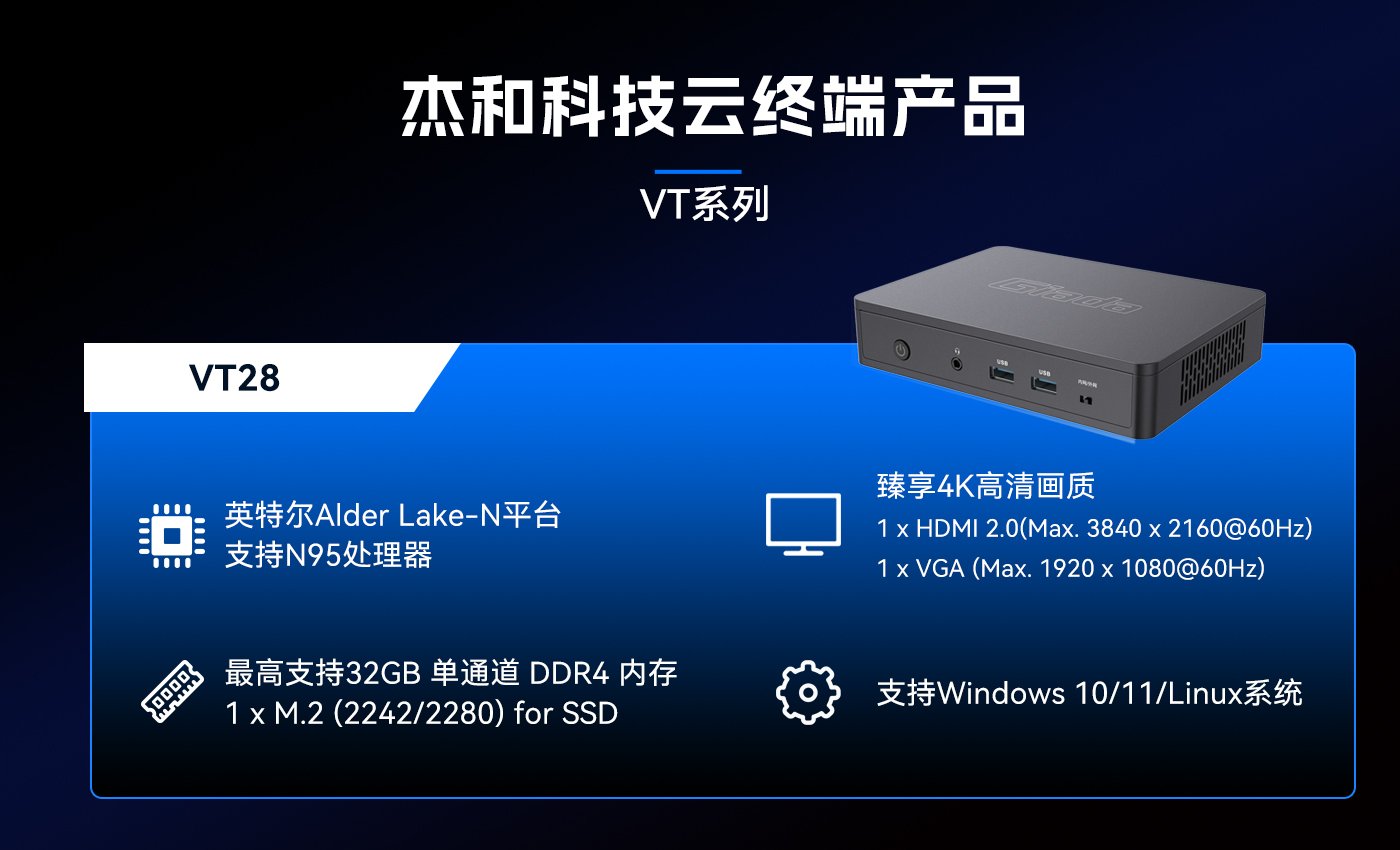 除此之外jinnianhui官网,金年会科技云终端VT系列产品线还提供多样化的硬件配置选择,涵盖多种处理器架构、内存容量、存储设备和接口类型,满足不同应用场景的个性化需求。