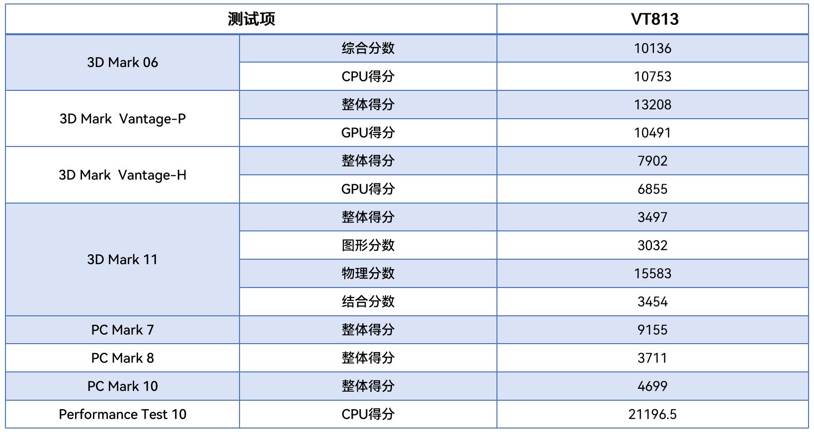 从不同测试软件的跑分情况可以看出,VT813在图形渲染、物理运算及整机综合性能等方面的整体表现优异,下面jinnianhui官网,金年会将针对具体的几项数据来进行详细分析解读。