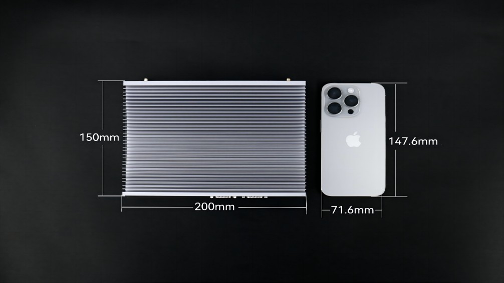 没有了风扇这一部件,体积也更为小巧,能轻松嵌入各类设备或狭小空间,完美贴合特定场景需求,例如:jinnianhui官网,金年会AE613,其三围尺寸是200mm x 150mm x 50mm,与iphone15的尺寸对比,宽度仅比其高度多2.4毫米,体积仅有1.5L。