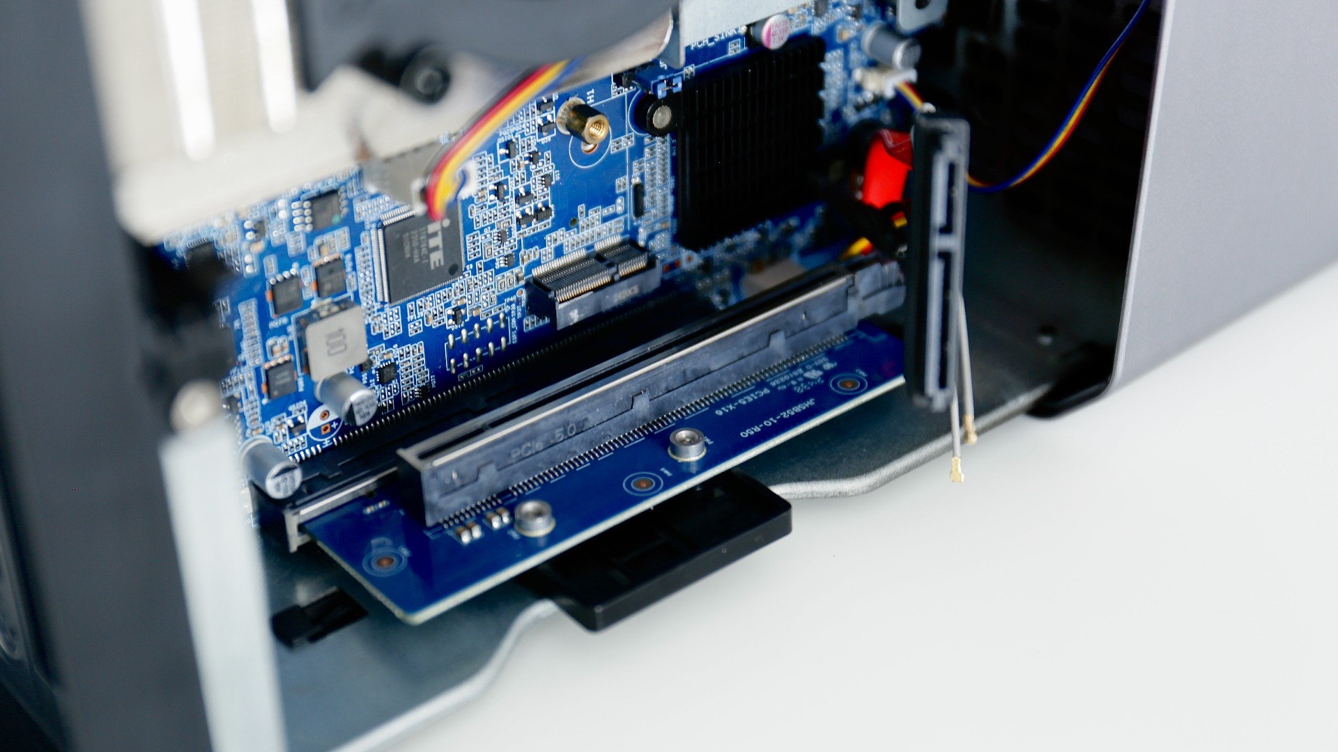 打开WA814内部,jinnianhui官网,金年会可以看到PCle5.0 x16 高速扩展口,它的速度高达64GB/s,可以实现独立显卡、多网口、高速 SSD、多 COM 等设备的扩展。
