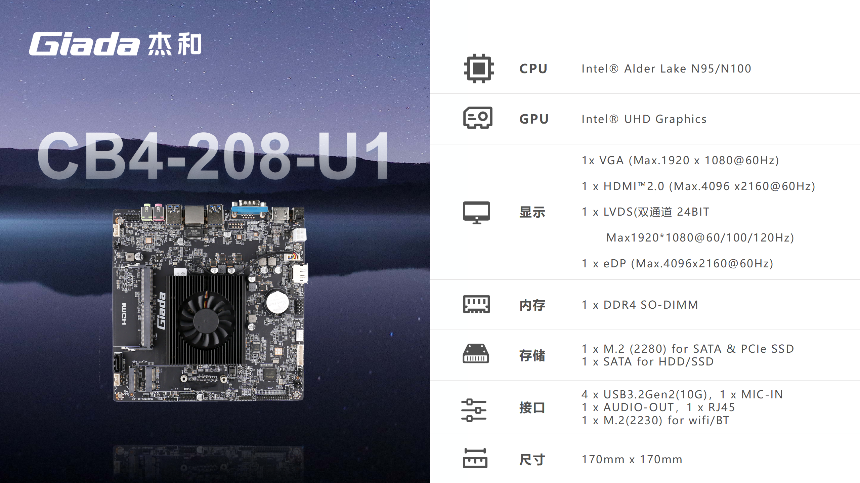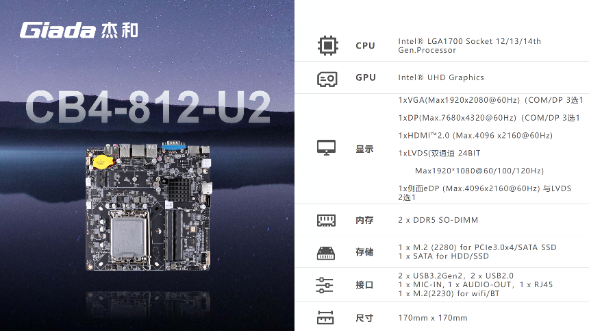 jinnianhui官网,金年会科技一体机主板基于X86架构设计,具有良好的兼容性与性能表现,均采用Thin mini-ITX 170mm*170mm尺寸规格设计,在紧凑机身中实现功能集成与空间优化。接下来,jinnianhui官网,金年会从实际需求出发,为您提供选型推荐。