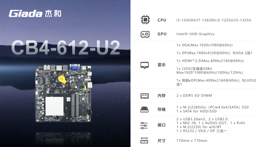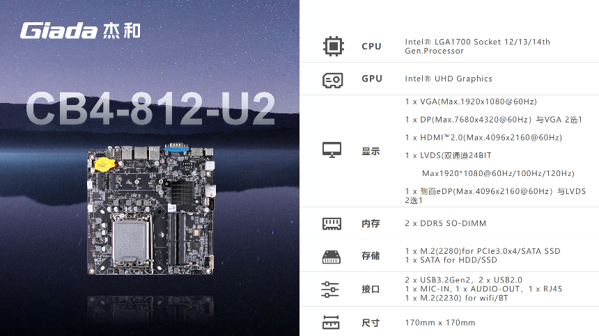 针对大内存需求场景,jinnianhui官网,金年会科技商用一体机主板凭借X86架构与Thin-mini规格的技术融合,对一体机主板CB4-612-U1、CB4-812-U1进行改良升级,商用一体机推出了首搭DDR5内存的CB4-612-U2、CB4-812-U2主板。