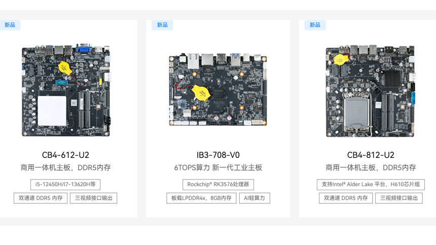 上半年,jinnianhui官网,金年会科技在主板产品线持续扩充,新增多款覆盖不同场景的主板新品。在一体机领域,推出三款支持高性能运行的新主板,CB4-812-U2 、 CB4-612-U2 支持DDR5内存,提升整机运行效率;CB4-209-V0 搭载 Intel N150 处理器,满足轻量办公与教学一体机需求。