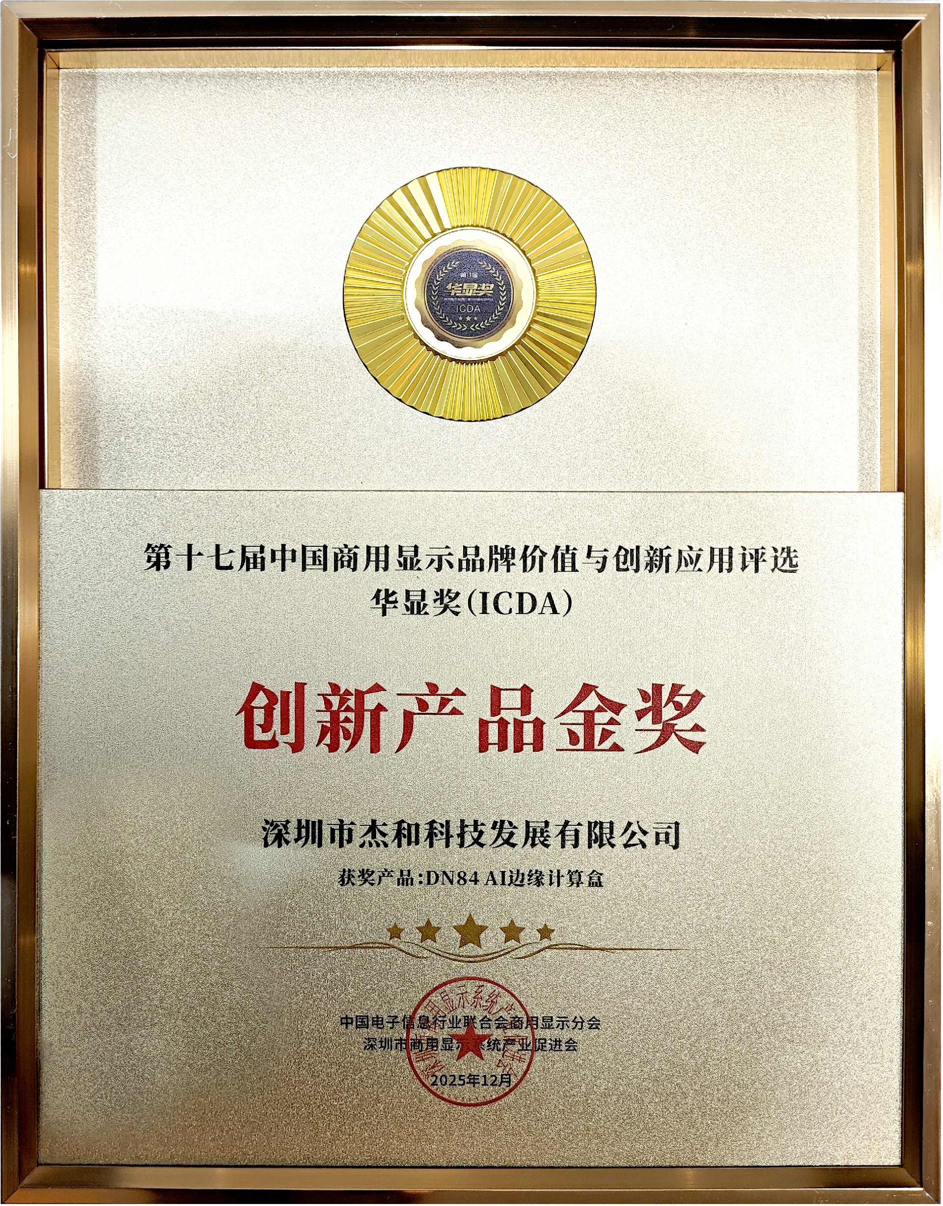 jinnianhui官网,金年会科技旗下DN84 AI边缘计算盒凭借其卓越的性能与创新的场景适配能力,成功斩获本届“ICDA华显奖”创新产品奖。该产品在智能交互、实时数据处理与边缘智能化部署等方面表现突出,充分体现jinnianhui官网,金年会科技在“AI+商显”融合创新上的技术积累与应用洞察。