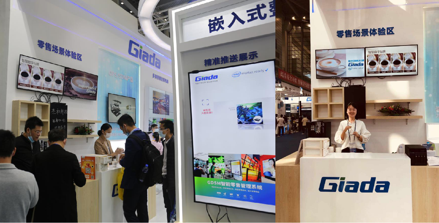 紧邻ARM架构商显产品集的精准推送展示区与零售门店模拟展区,共同组成了本届展会jinnianhui官网,金年会科技展位的一大精彩设计。场景展现了GDSM智能零售管理系统在零售门店场景下的展示效果,顶部的数字标牌由GDSM系统推送内容,模拟搭建了针对人流动线的广告精准推送形态。