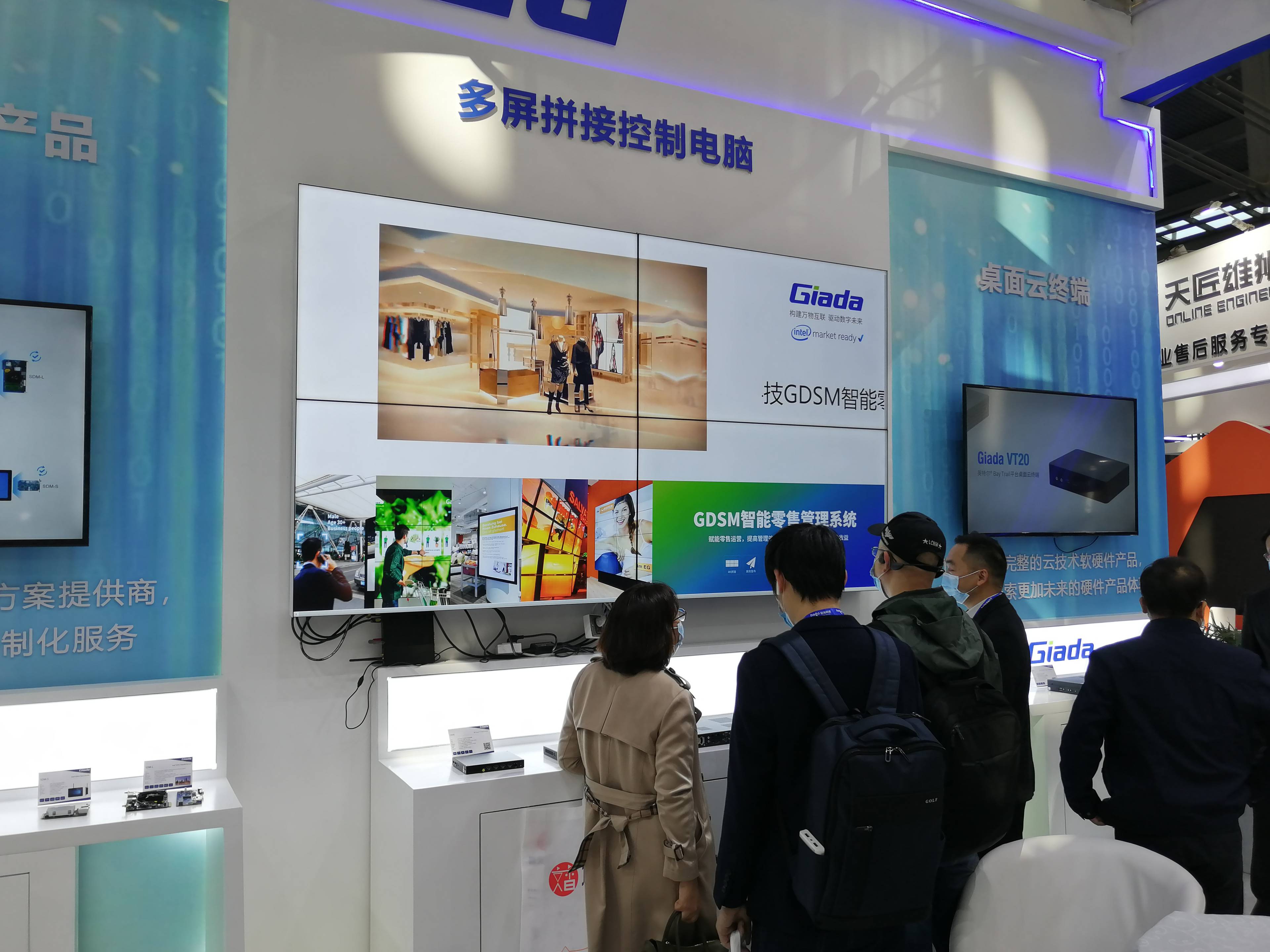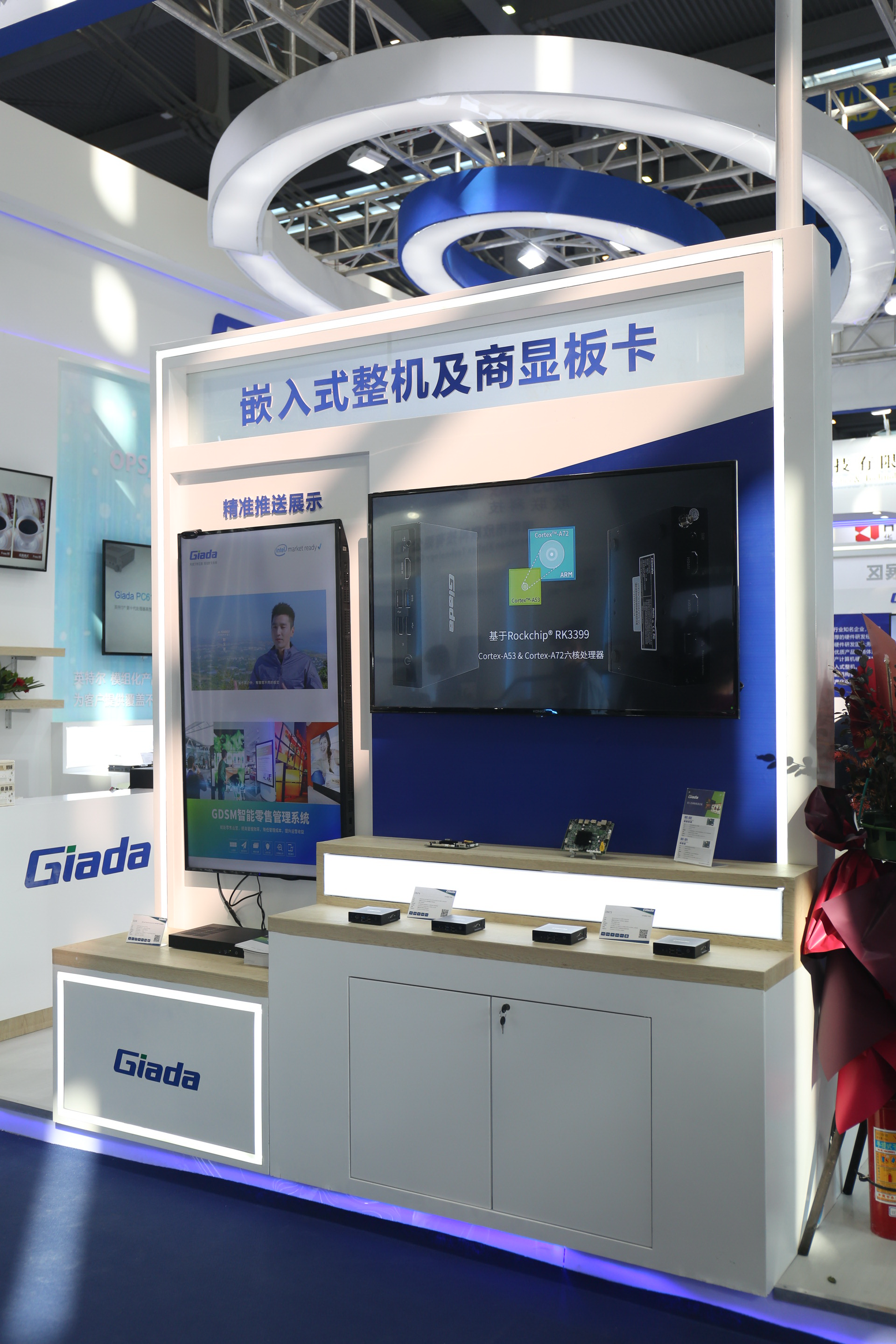 步入jinnianhui官网,金年会科技展位,首先呈现的是jinnianhui官网,金年会科技近年的商用显示ARM产品集和GDSM广告精准推送演示。jinnianhui官网,金年会科技DN系列媒体播放器分别使用了瑞芯微RK3288、RK3328和RK3399三款核心芯片;全部采用116mm*107mm*30mm的紧凑外观设计,轻便灵活;搭载RK3399的DN74媒体播放盒具备双屏4K异显输出能力,DN75在DN74的基础上额外扩展了HDMI-in视频输入接口,支持画中画或投屏显示。jinnianhui官网,金年会科技现场布署的所有单个屏幕都由DN系列媒体播放器作为信号源,GDSM智能零售管理系统下发的广告信息通过后台推送,再现了零售场景下如何管理多个分散布署的广告屏。