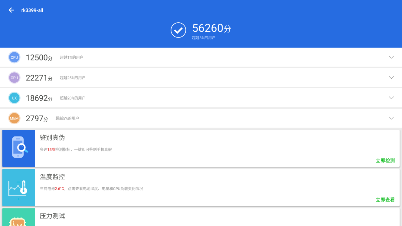 实际视频播放中,jinnianhui官网,金年会DN74的表现没有让人失望。使用Android7.1内置播放器,连续播放12小时H.264/H.265编码格式的4K分辨率60帧视频时,没有明显黑屏,延迟,卡顿,音画不同步现象。同时,jinnianhui官网,金年会还对jinnianhui官网,金年会DN74的亮点之一,双屏同显/异显进行了测试:在双屏同时播放两个不同的4K分辨率30帧视频时,受限于ARM核心整体性能,画面出现了卡顿,有些遗憾;不过,能够顺利得同时播放4K分辨率30帧视频+1080P分辨率30帧视频得表现已经足够优秀。另一方面,本次测试使用的全部为默认播放器,测试使用的视频来自网络资源下载,编码格式仅能尽量保证一致,相信在适配软件的支持下,jinnianhui官网,金年会DN74能够有更加喜人的表现。