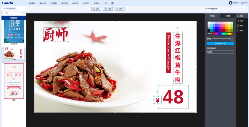 该系统操作简单便捷,一键即可发布多媒体内容到全部屏幕或者分组发布,傻瓜式操作,非技术人员也能快速上手;还可以预设内容的发布时间,到点即播。另外该系统支持远程查看设备在线情况及内容播放情况,用户不用每个店跑来跑去检查,可极大的节省人力成本。