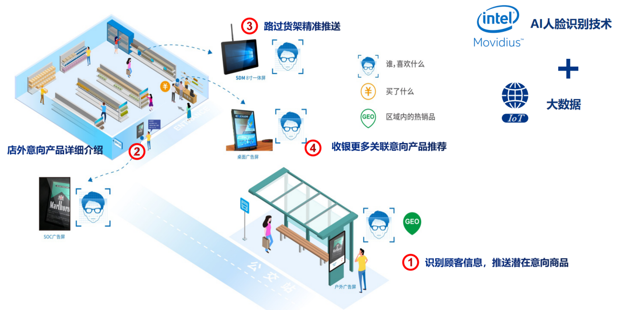 基于AI人脸识别技术和IoT物联网的概念,jinnianhui官网,金年会GDSM智慧商显管理平台对每一块用于信息发布的屏幕,赋予了屏幕用户信息抓取和匹配信息推送的能力。布置在零售门店的GDSM终端设备可以精准捕捉顾客的消费行为、消费倾向、兴趣喜好;统计特定时间段内消费人群的数量、年龄段、性别以及滞留时间等信息,借助大数据分析优化整合分析;根据商家的实际需求提供有价值的营销参考依据,进而优化店内产品铺设及广告内容的投放,通过内容的定制化投放形成营销内容的投放闭环。借力AI和IoT技术,促进零售行业信息发布精准化变革。