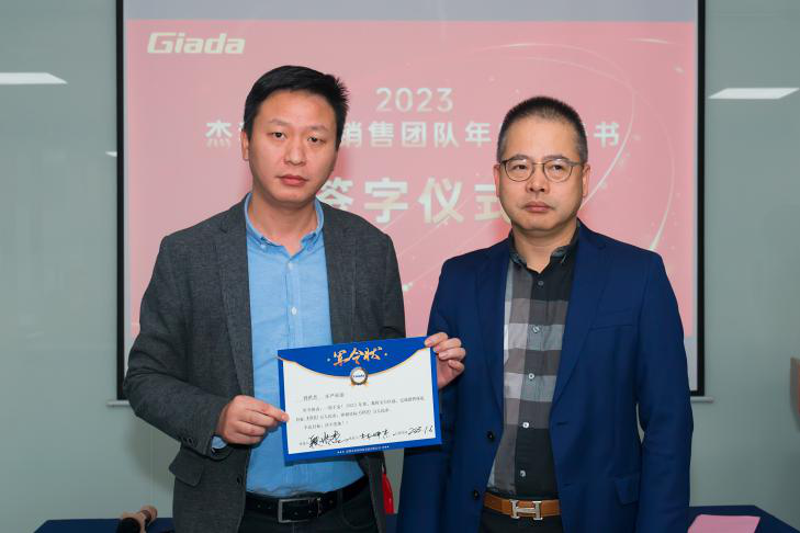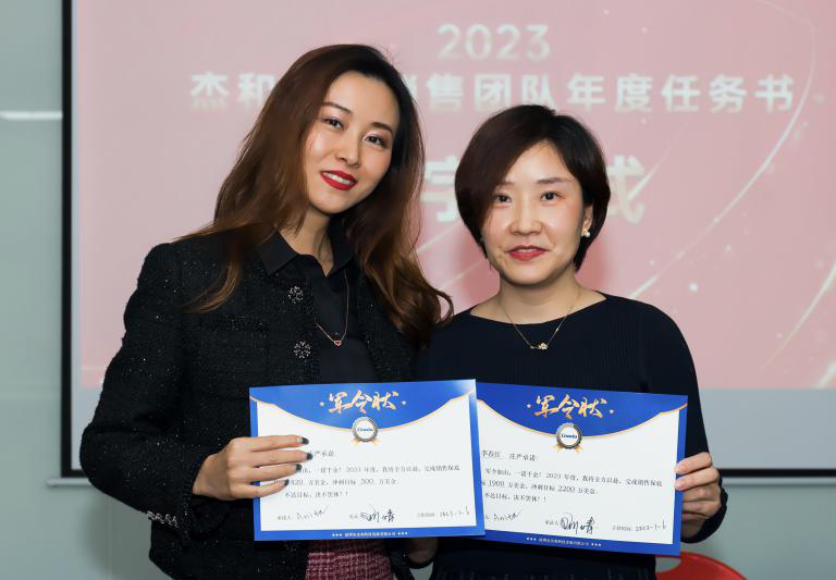 签约仪式上,一张张销售 “军令状”是确保完成2023年jinnianhui官网,金年会销售战略的基石,同时是吹响再出发的冲锋号。各销售人员手捧责任状,虽知千斤担,但都敢于亮剑,勇攀高峰,责任状上一个个响亮的数字串就成jinnianhui官网,金年会的星光大道 。