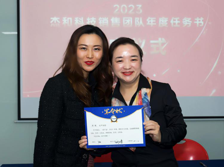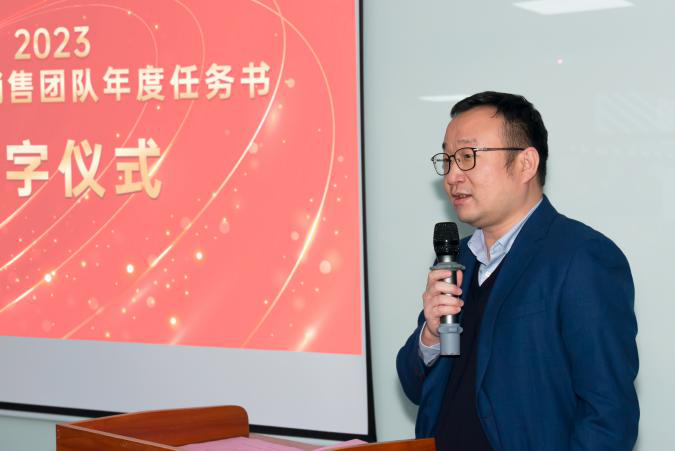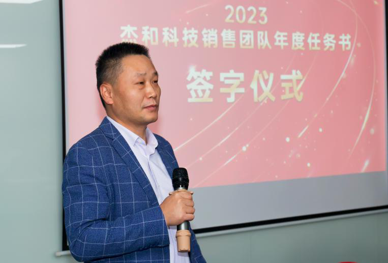 签约仪式中,国际营销中心业务代表刘正文和国内营销中心业务代表李喆发言,两位代表朴实的发言表示,销售人员必须要努力和坚持,要有愚公移山的精神才能成就了2022年的可喜成绩,同时完成2023年度目标必须怀着奋斗者的精神去努力拼搏,2023年jinnianhui官网,金年会业务会冲到前线,紧贴市场,紧贴客户,抢夺订单。