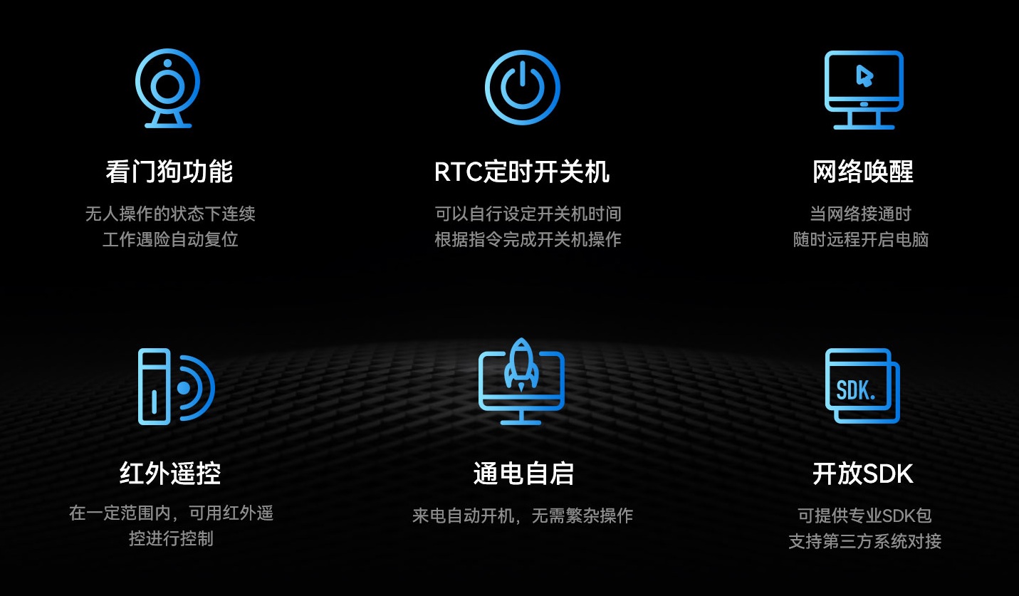 jinnianhui官网,金年会科技DE76B4支持Android操作系统,配置高可靠无人值守专利技术,包括定时开关机、看门狗计时器、RTC宕机自检、红外遥控和局域网唤醒等功能,可以有效降低能源消耗,节省人力维护成本。采用被动冷却系统,无需风扇运转,运行时无噪音和防尘,降低故障率,并达到0℃~60℃宽温工作标准,可在复杂电磁环境等各种条件下稳定运行。