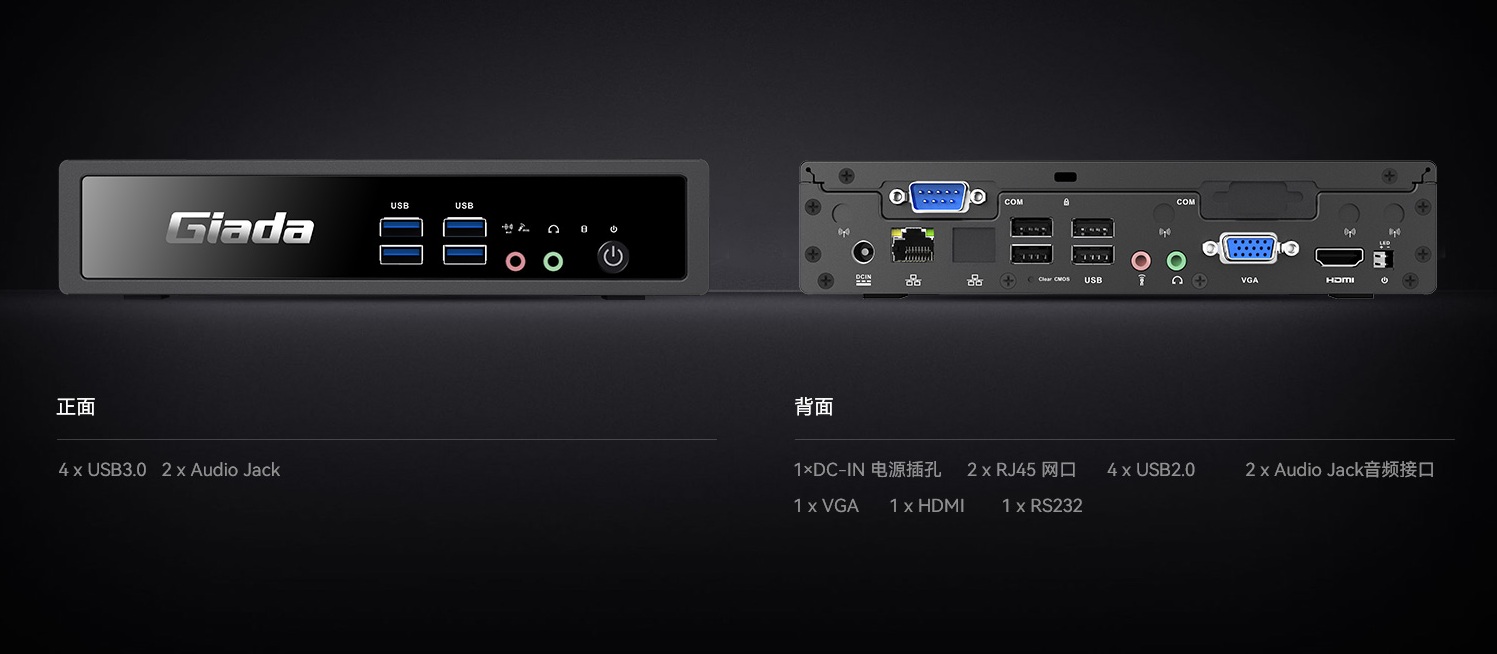 jinnianhui官网,金年会云终端BW612机身背面配备四个USB2.0接口,两个3.5mm 音频接口,两个千兆网线接口,一个VGA和 HDMI 接口,兼容几乎全部主流外设,满足云终端全场景接口使用需求,同时正面配备两个3.5mm音频接口,四个USB3.0接口,满足即插即用的设备需求。
