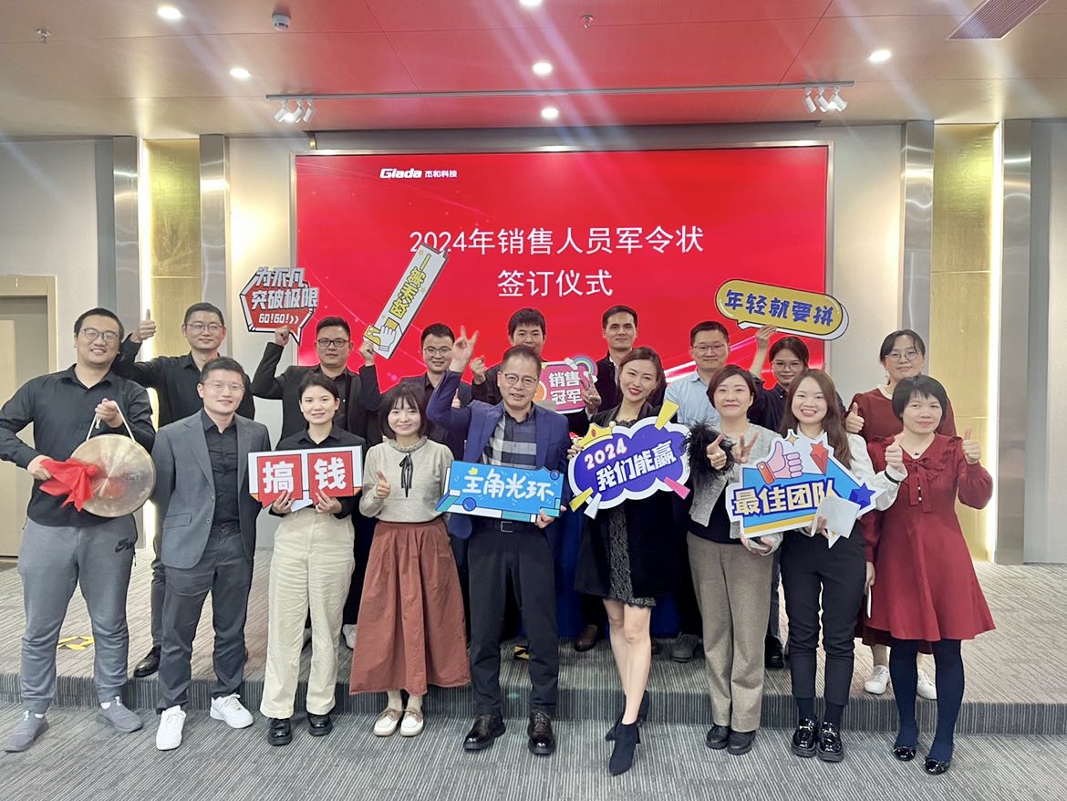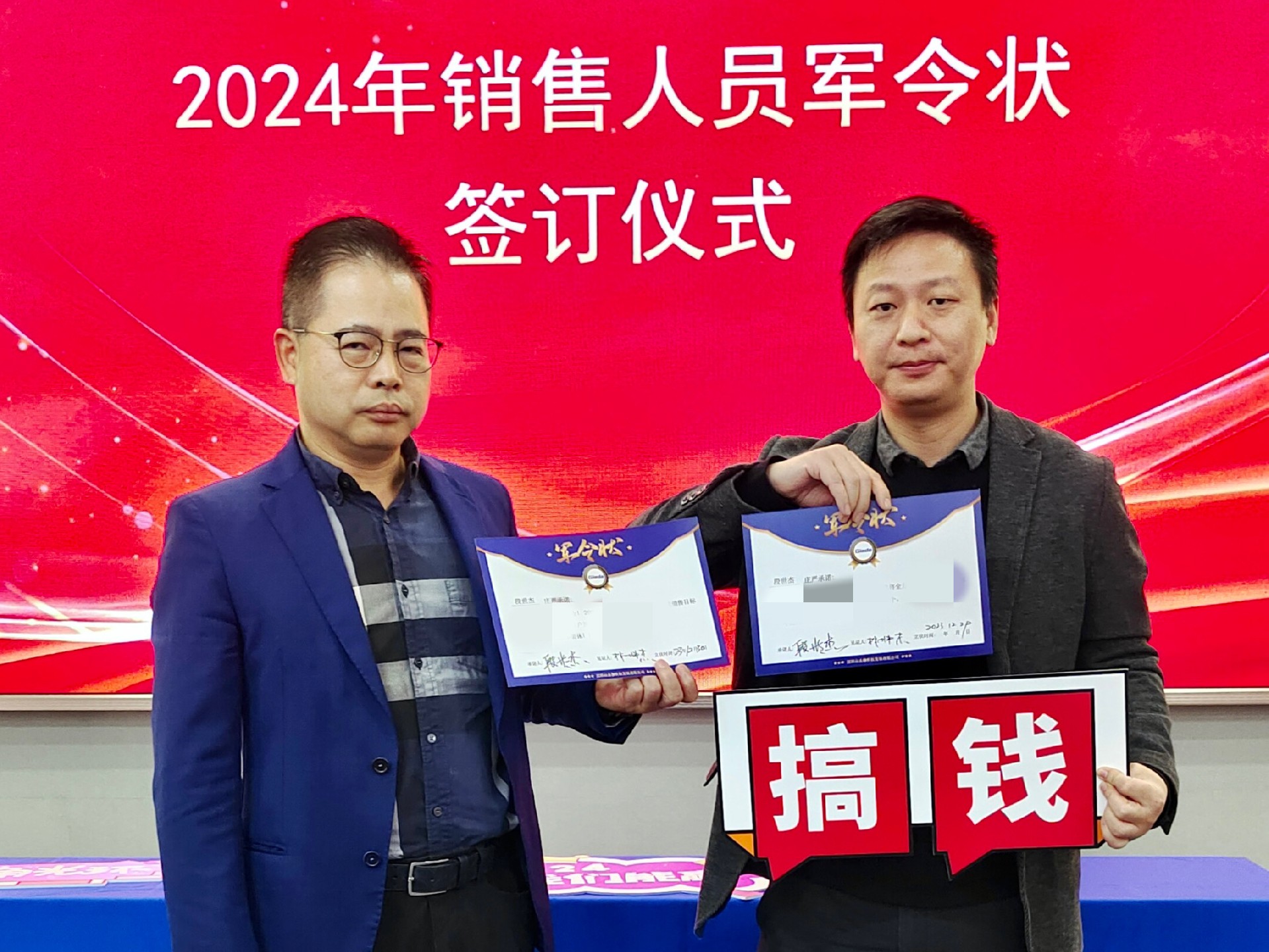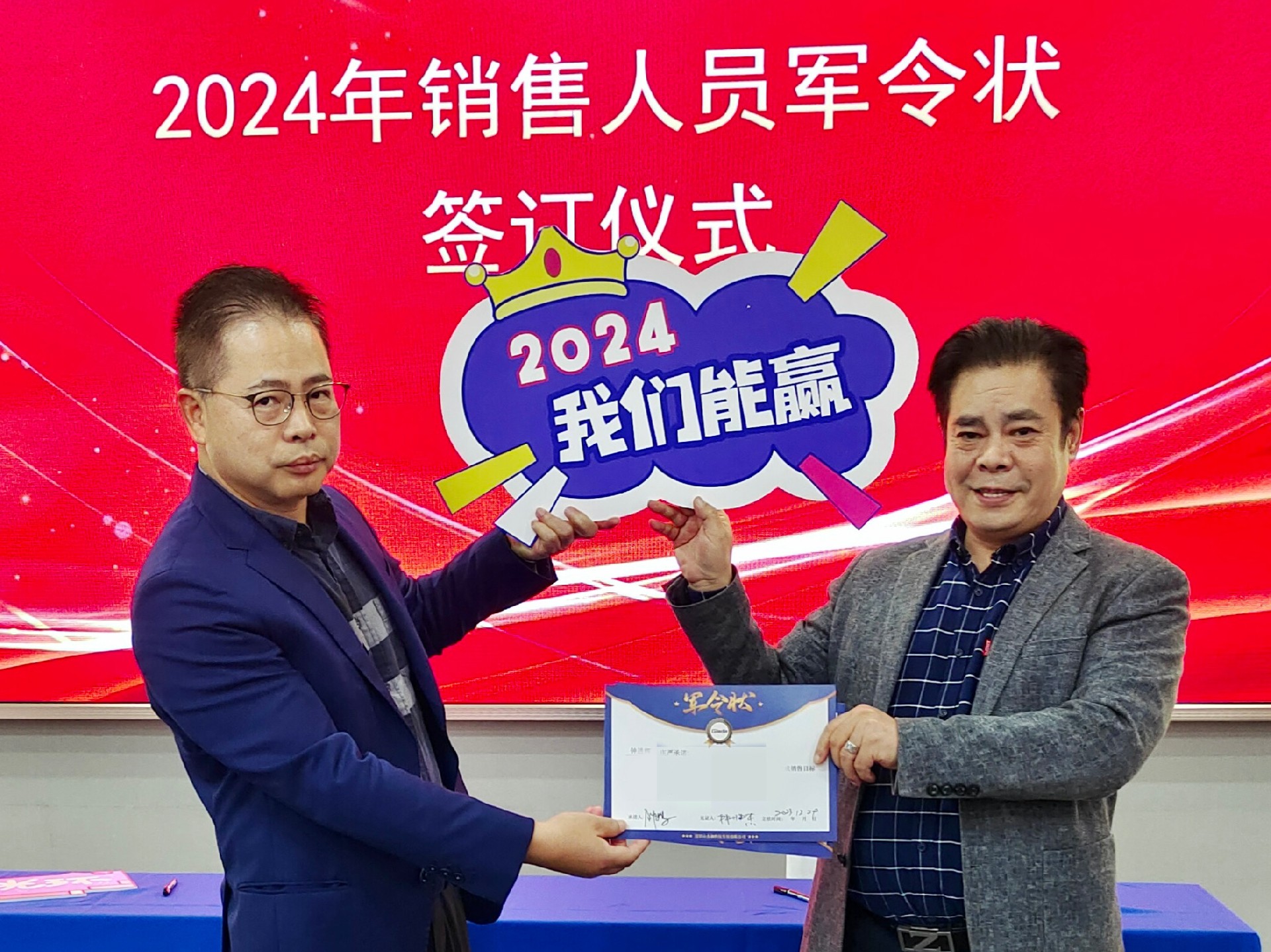 2024公司年度战略目标确立,言出必行,使命必达,国际/国内销售团队为了共同的目标开始军令状签约仪式。一纸军令状,是jinnianhui官网,金年会科技与销售人员的双向承诺,是压力,更是动力。是不破楼兰终不还的决心,更是春风得意马蹄疾,一日看尽长安花的期待。