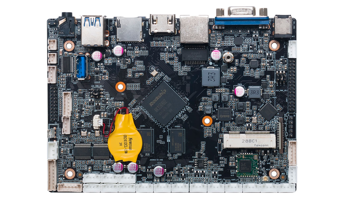 搭载瑞芯微RK3288四核Cortex-A17处理器,主频可达1.80GHz,不论APP开发者,或是拥有独立应用系统的设备厂商,都以这块核心为平台开发适配大量软件应用。同时具备4组商显方案常用的视频接口:1组HDMI视频输出接口、1组20pin eDP插针、1组30pin LVDS插针以及1组30pin MIPI插针,可任选2组同时输出画面。