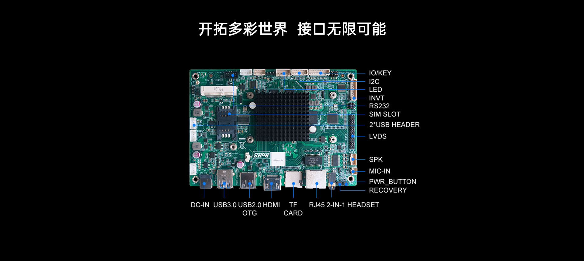 | 外部I/O | 接口 | 1 x HDMI (Max.3840 x 2160 @60 Hz) 1 x USB3.2 Gen1, 1 x USB2.0 OTG 1 x RJ45 1 x 2-IN-1 Headset (AUDIO-OUT & MIC-IN) |