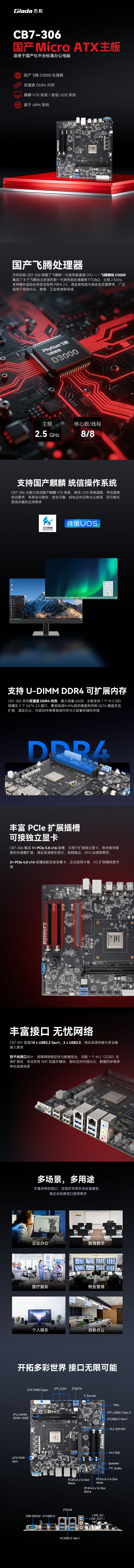新品第二弹|基于飞腾D3000处理器,jinnianhui官网,金年会科技推出Micro-ATX主板CB7-306
